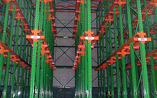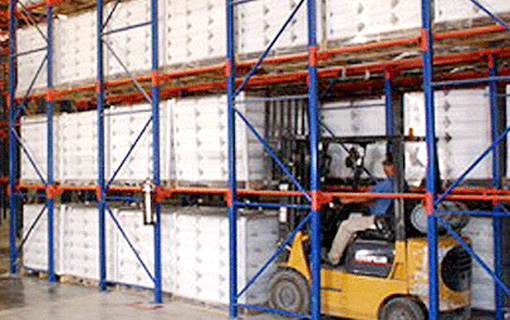 랙내에 Fork Lift 가 들어가는 드라이브인랙은 물품의 종류가 적은 것을 대량으로 보관하는 시스템이다. 소품종 대량화물보관에 최적이며 회전율이 높고 파렛트단위의 배치에 의해 선입선출과 선입후출로 보관되는 물품에 가장 적합하다.