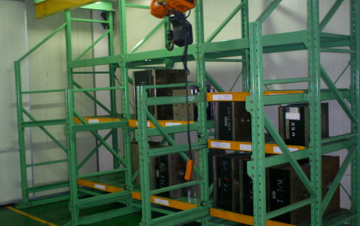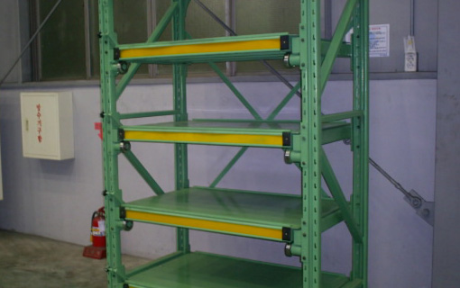 특수베어링을 사용하여 선바자체를 인출하는 방법으로 금형등 중량물을 수납관리하는데 있어 매우 경제적이다. 넓은 통로나 스페이스가 필요하지 않다.